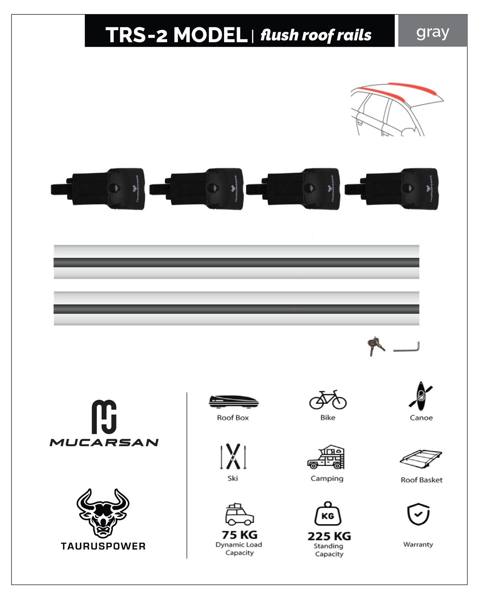 TRS-2 Roof Rails 80-106 Cm: $49