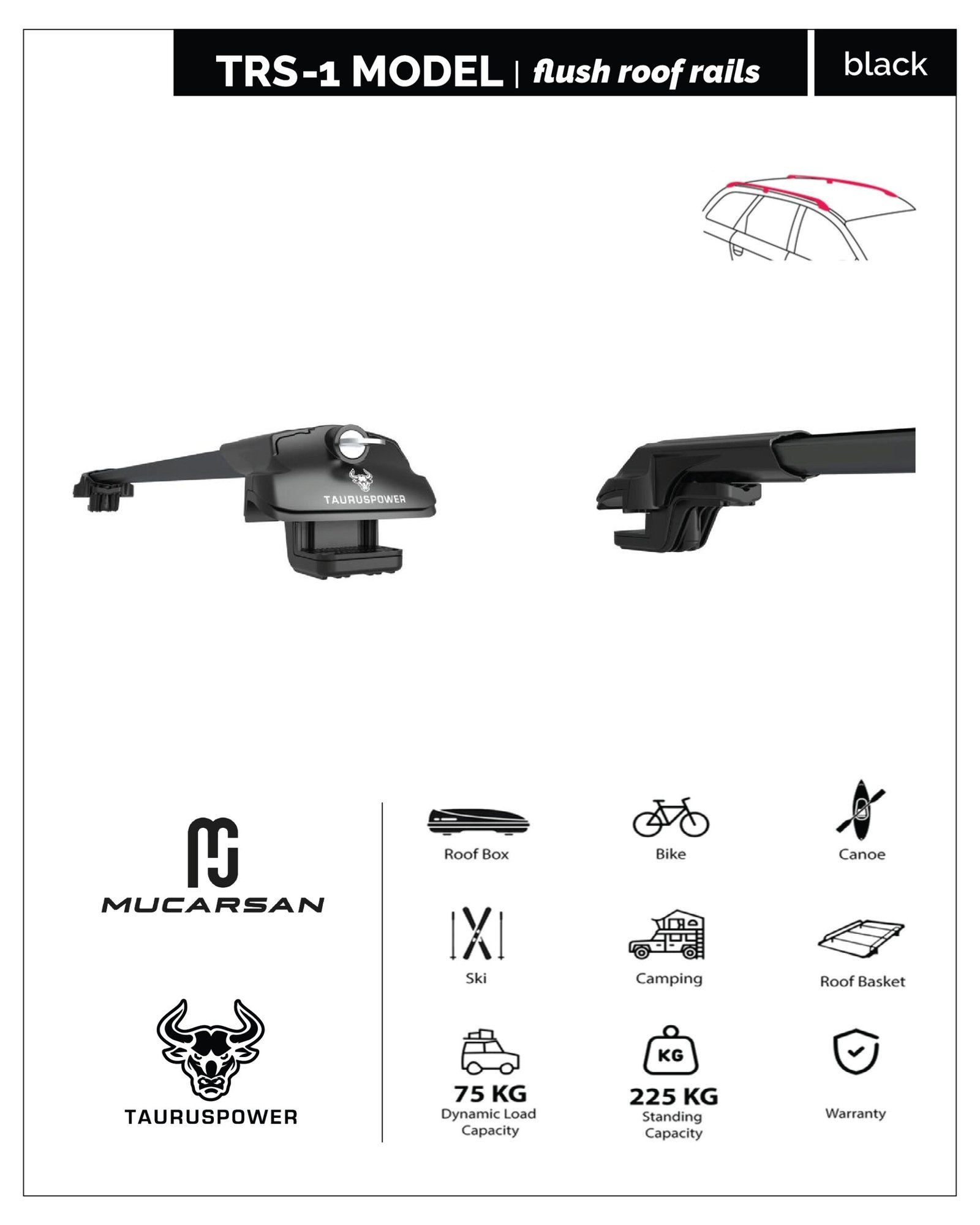 TRS-1 Roof Rails 106-120 Cm: $51